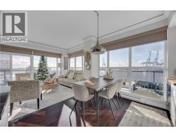 $748.30 MonthlyWake up to sweeping panoramic harbour views in this stunning corner unit condo at the sought after Harbourfront Residences at Three Sisters. Bright and modern, the open concept kitchen and living area features floor to ceiling windows, stainless steel appliances, fresh white cabinetry, and granite countertops creating an inviting space filled with natural light. The spacious primary bedroom includes a private ensuite, while a second bedroom, flexible den/office, and an additional full bathroom offer comfort and convenience. Step onto the oversized wrap around balcony to enjoy your morning coffee as the sun rises over the water. Your heated underground parking space comes with added perks including a car wash station and a dedicated bicycle bay with tire pump. The building offers exceptional amenities as well, such as an outdoor BBQ patio, fitness room, community lounge, and guest suite. Ideally located within walking distance to restaurants, shops, galleries, and the Saint John City Market, this condo delivers the best of urban living paired with low maintenance luxury. Experience the beauty of the harbour in every season from your new home at Harbourfront Residences. (id:31036)