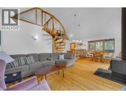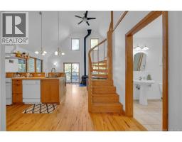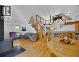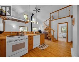 Your Private Waterfront Escape Awaits. Tucked at the end of a gated private lane and surrounded by trees, this year-round waterfront retreat captures everything you could want in a home or cottage. Perched safely above the high-water mark on 2.62 acres along the stunning Washademoak Lake, where it channels into the Saint John River. This property offers unmatched privacy, natural beauty, and endless recreation. The open-concept great room showcases soaring ceilings, spiral staircase, abundant natural light, a cozy wood stove, and double patio doors leading to a wraparound deck with breathtaking westerly views, perfect for sunsets over the water. With two comfortable bedrooms plus a loft, the layout suits both a peaceful primary residence and a family getaway. The spacious bath and thoughtful design invite relaxation at every turn. Outside, enjoy your own waterfrontage for swimming, boating, and lakeside fun. An oversized garage provides ample space for toys and tools, while the charming bunkhouse loft welcomes guests with comfort and character. A rare opportunity to live year-round in one of the most serene and picturesque settings in New Brunswick. Your waterfront lifestyle begins here. (id:31036)