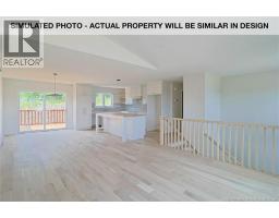 Located in one of Fredericton's most desirable neighbourhoods, Brookside West, this modern custom-built split-entry offers style, comfort, and convenience. Just minutes from the local school, parks, and recreation, and a short drive to all amenities on Fredericton's Northside, this home sits on a quiet court. An oversized foyer with a built-in bench welcomes you inside. A few steps up, the open-concept living, dining, and kitchen areas create a bright and functional main level. The kitchen features sleek white cabinetry with wood accents, a large island with a breakfast bar, a spacious pantry, and a butcher block countertop with tile backsplash. The dining area accommodates a full-sized table and provides easy access to the back deck and yard. The living room offers cathedral ceilings, hardwood flooring, a ductless heat pump, and an oversized picture window. Down the hall are three comfortable bedrooms, including the primary suite with a walk-in closet and full ensuite, along with the main bathroom. The lower level is bright and spacious, offering a family room and a mudroom area with double closets off the entry to the attached double garage. This level also includes a fourth bedroom, a third bathroom with laundry, and a storage/utility room. (id:31036)