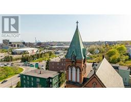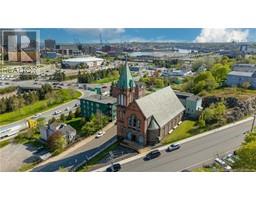 This magnificent building was built in 1892, is located minutes to uptown Saint John, next to the main highway, and has breathtaking views and great access to all the city has to offer. The main floor has been well-preserved and boasts beautiful arches, column, tin ceilings and most of the original stained glass windows still in place. Upstairs, the balcony overlooks the main floor area, has much of the original woodwork including pews, and circular staircase leading to the bell tower. And the bell! This massive piece of history is still in tact and functional!! The finished basement is bright with large windows offering ample natural light, tin ceilings, a kitchen, office and half bath; making it a great space for storage, a studio, or events and gatherings. Slate shingled roof, new 1"" water line, two ducted Daikin heat pumps, 400 amp entrance, private parking spot at the rear and ample on-street parking Property has been re-zoned as mid-rise residential, and has the possibility of becoming a beautiful multi-unit residence. Having been a church for over a century and recently operated as an event venue hosting private functions and weddings, what's your vision? Taxes currently reflect commercial use. Being sold as is, where, is (id:31036)