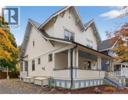 When Viewing This Property on Realtor.ca Please Click on The Multimedia or Virtual Tour Link for More Property Info. This beautifully restored 1917 Craftsman home features rare double gable & curved side rake architecture on a large, professionally landscaped lot with a 97 driveway, lush backyard, & perennial gardens. The cedar porch with herringbone detail leads to a welcoming foyer with 9 ceilings. A bright, south-facing kitchen offers quartz & white oak countertops, Café appliances including double oven, fireclay sink, & heated flooring. Enjoy the natural gas BBQ on the brick patio just outside the kitchen. The dining room with bay windows & refinished hardwood opens to a spacious living room with gas fireplace & original Douglas Fir pocket doors, with a convenient half bath nearby. Upstairs features 4 sunny bedrooms, each with hardwood floors, ample closets, & European shutters, plus a laundry room & elegant bath with antique double vanity, gold Moen fixtures, & soaker tub. The finished basement includes a stylish full bath, flex room, & restored architectural details. A major roof restoration includes Euroshield Vermont Slate roofing, new framing, decking, & cedar soffits for a lifetime of durability. The homes craftsmanship & thoughtful design carry through every detail, creating an inviting retreat filled with warmth & timeless appeal. Steps from Victoria Park, cafés, restaurants, & vibrant downtown amenities, this property offers charm, community, & comfort in one. (id:31036)