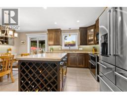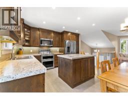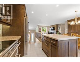 Welcome to 72 Pelagie in Dieppe. This meticulously maintained home with FULLY DUCTED FORCED AIR CENTRAL HEAT and an ATTACHED DOUBLE GARAGE has been tastefully updated through the years and radiates pride of ownership. The bright, open-concept main level features an impressive kitchen with contemporary shaker cabinets, a quartz island, KitchenAid stainless steel appliances, new ceramic tile, and ample storage, creating the ideal gathering place for family and friends. The dining area flows seamlessly into an expansive back deck and screened gazebo, overlooking a manicured, fully fenced yard with easy-care perennials, perfect for outdoor living. Inside, the living room features a striking stone wall with a built-in electric fireplace and a custom wood mantle, blending warmth and modern elegance. Hunter Douglas window coverings, wired speakers, and an alarm system add comfort and security. Down the hall are three generous bedrooms and a renovated, spa-inspired bathroom with in-floor heating, a washer and dryer tucked behind double doors, a quartz vanity, a full wall mirror, custom cabinetry, modern lighting, and porcelain tile. The lower level, featuring oversized windows, expands your lifestyle with a spacious family room and wet bar, two additional large bedrooms, a full bath, and ample storage. Outside, enjoy an extra-wide paved driveway and easy access to ATV trails at the end of the street. This move-in-ready home truly has it all. Equalized billing for heat and lights $397 (id:31036)