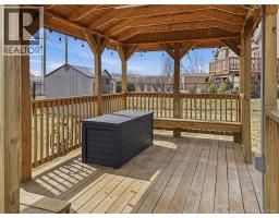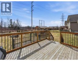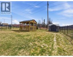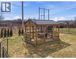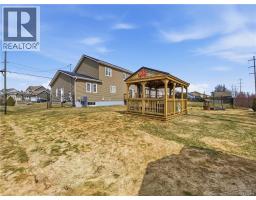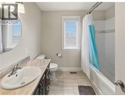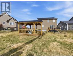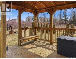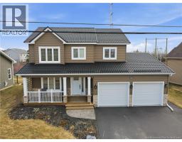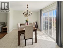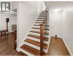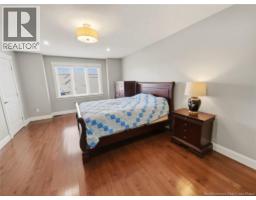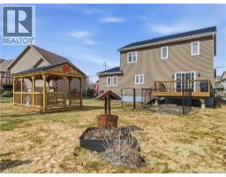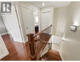 Custom-built 2-storey executive home in sought-after Moncton North, backing onto the Northwest Walking Trail for ultimate privacy and no rear neighbours. Beautifully landscaped with a welcoming front porch perfect for your morning coffee. The main floor features a mudroom with double closet, spacious kitchen with ample cabinetry, built-in microwave, ceramic tile floors, and an open dining area, plus a convenient 2-pc bath. Hardwood floors run throughout the living room, staircases, upper landing, and every bedroom. The generous primary suite accommodates a king bed, features a walk-in closet with natural light, and a 4-pc ensuite. Two additional bedrooms are virtually identical in size ideal for families. The fully fenced backyard (210 ft black chain link) showcases a 10'×12' cabana with electricity and matching steel roof, a 10'×10' dog kennel, and a paved driveway. The lower level offers a large family room and storage room with rough-in for a future bathroom. Natural gas heating, central A/C, central vac, owned water heater, and excellent soundproofing complete the package. With over $47,500 in upgrades including a 50-year steel roof, 2025 Samsung washer/dryer, and 2025 Frigidaire appliances, this home is truly move-in ready. Close to French and English schools and all amenities. (id:31036)