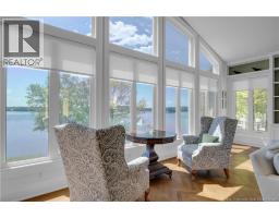 Beautiful custom-designed, quality-built home with breathtaking views of the historic, tidal St. Croix River in Oak Bay. This light-filled home offers a sense of space, calm, and connection to nature. Expansive windows upstairs and down capture the everchanging tides, dramatic sunsets, and wildlife in every season. In spring, eagles soar overhead, and shy foxes appear at the edge of the woods. Winter brings gentle snowfalls that transform the home into a snow globe. The interior features custom millwork throughout, herringbone oak flooring in the kitchen and great room, solid oak floors in the ground floor primary bedroom, and 8-foot solid core doors. French doors add elegance and openness, while soundproofing in all interior walls and floors ensures peace and privacy. The kitchen boasts cherry cabinetry and Carrera marble countertops. The primary bath is beautifully finished with Carrera marble vanity, marble tile, and a custom-designed layout. Travertine floors enrich the foyer, powder room, and laundry. The lower level includes more custom cabinetry, 8-foot doors, and a built-in vacuum system. A three-season porch and a deck with unobstructed tempered glass railings invite outdoor living. Set on nearly three acres of private, manicured grounds with perennial gardens, this home also includes a garage and carport. Stairs leading to the beach is a perfect spot to launch your kayak for an evening sunset paddle. A rare blend of craftsmanship, comfort, and natural beauty. (id:31036)