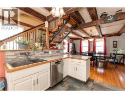 Welcome to Mountainview Solitude Inn at 186 Marys Point Road in Harvey. A beautifully restored shipbuilders home, rebuilt from the studs up, blending original charm with modern comfort, exposed axe-hewn ceiling beams on both levels, and beautifully restored wood floors. Currently operating as a successful B&B, the property offers 5 bedrooms, 5 bathrooms, and a double car garage. The main floor features a private owners suite (1 bed, 1 bath), along with a welcoming living room, dining area, and kitchen; perfect for hosting or everyday living. Upstairs, four spacious guest bedrooms each include their own ensuite bath, ensuring comfort and privacy. Set on approximately 2.5 acres, the property enjoys peaceful water views of the Shepody River with the Caledonia Mountains in the background making this a serene retreat-like setting. Located near Mary's Point, renowned for its remarkable shorebird activity, its a dream destination for bird watchers and nature lovers. With septic and water services in place for expansion via a lane giving access to three cleared sites for cottages, cabins, or domes. Continue as a B&B, host retreats, expand accommodations, or create your private escape. Popular destinations nearby include Mary's Point Beach, Cape Enrage & Sawmill Creek Bridge, plus Broadleaf Ranch & Studio On The Marsh. A rare opportunity blending lifestyle, income potential, and natural beauty; contact your REALTOR® to book your private showing. (id:31036)