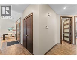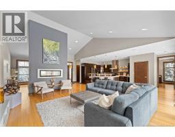Freshly painted PRIVATE EXECUTIVE RETREAT on a private 2.59 ACRE LOT, minutes from Dieppe and Moncton. This architecturally striking bungalow with LOFT offers nearly 3,900 sq ft of finished living space designed for PRIVACY, space, and long-term COMFORT without sacrificing convenience. The main level features soaring ceilings, dramatic feature walls, and an open-concept layout anchored by a DUAL-SIDED PROPANE FIREPLACE. Large windows flood the home with natural light while framing views of the surrounding trees. The chefs kitchen includes a large island, upgraded fixtures, and seamless flow to the dining and living areas, ideal for entertaining or everyday living. FOUR BEDROOMS are located on the MAIN LEVEL, including a spacious PRIMARY SUITE with spa-inspired ENSUITE and WALK-IN-CLOSET. A second full bathroom, main-floor laundry, and mudroom add everyday functionality. The LOFT above offers flexible space for a home office or quiet retreat. The fully finished WALK-OUT BASEMENT features a professional GOLF SIMULATOR, games and LOUNGE AREAS, custom WINE CELAR, GYM, and direct access to the lower patio and HOT TUB area. Outdoor living includes an elevated deck, fire pit area, and mature trees creating a rare sense of seclusion. Additional highlights include GEOTHERMAL heating and cooling, METAL ROOF, DOUBLE attached GARAGE. A rare incredible offering combining estate-style privacy with city convenience. (id:31036)