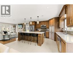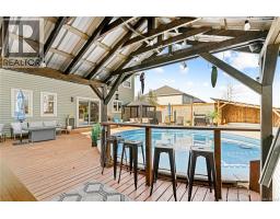 CENTRAL HEAT PUMP/ BACK YARD OASIS/ OVERSIZED BEDROOMS AND ENSUITE BATH/ SHED WITH CEDAR WOOD INTERIOR AND WOOD STOVE/ Welcome to this impressive two-storey home designed for both comfort and entertaining. The main floor consists of an open concept living/kitchen/dining area featuring a propane fireplace, stone accent wall in the living room and built in ceiling speakers for surround sound. The kitchen has plenty of storage with a large island with QUARTZ countertop and a corner pantry. The main floor is completed with a powder room and laundry behind the 22x23FT garage. The oversized primary bedroom serves as a private retreat, complete with a spacious ensuite for added comfort. The second floor is completed with a modern 5+PC Bathroom and 2 12x10FT bedrooms. The lower level features a spacious and bright living area, Non-conforming 4th bedroom, storage area and room with rough ins for a bathroom. The home is equipped with central heating and cooling, ensuring year-round efficiency and climate control. Step outside to your own backyard oasis, this 900 SQ FT area features a 24 FT Above ground HEATED pool, hot tub and bar surrounded by a privacy wall. The perfect setting for relaxation and entertaining. The property also includes two sheds, one of which is a standout cozy retreat with cedar wood interior and a wood stoveideal for a hobby space, lounge, or quiet escape. (id:31036)