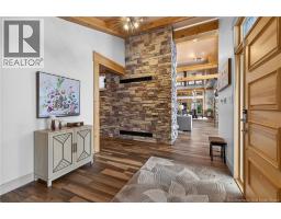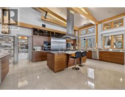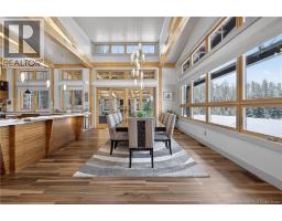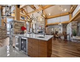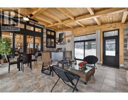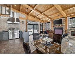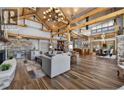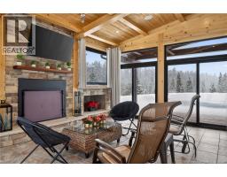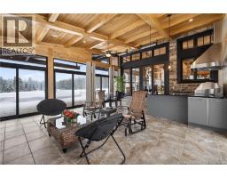 Set on 20 private wooded acres, this exceptional residence offers remarkable privacy and rare tranquility. Timber frame construction with a soaring 23-foot cathedral ceiling and massive exposed beams creates a warm and inviting atmosphere, ideal for entertaining. The open-concept layout seamlessly connects the kitchen, dining, and living areas around a striking stone accent wall and central fireplace, while three fireplaces in total provide added comfort and a cozy ambiance throughout the winter months. The gourmet kitchen features custom solid Mozambique wood cabinetry, three generous islands, quartz countertops, an integrated butcher block, and premium Miele and Marvel appliances. Two full bedroom suites each include a private bathroom with a freestanding soaking tub and glass-enclosed shower. A spacious office supports working from home, and a dedicated home theatre room offers the perfect retreat for relaxation. The four-season veranda extends the living space year-round, ideal for gathering around the built-in barbecue and enjoying memorable moments. Radiant heated floors throughout the residence, Control4 smart home system, motorized blinds, security cameras, fibre optic internet, 22 kW automatic propane generator, and 400 AMP electrical service complete this rare estate where comfort, technology, and quality of life come together. (id:31036)