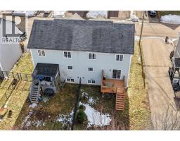 Welcome to this well-maintained semi-detached home located on a quiet cul-de-sac in Moncton North. The property features a double paved driveway, attractive landscaping, and a backyard with mature trees offering privacy. Inside, youll find a spacious living room that flows into a bright kitchen with cherry wood cabinets, island, backsplash, dishwasher, and a built-in microwave. The large dining area includes patio doors leading to a 12 x 12 deck, perfect for outdoor enjoyment. The upper level offers a primary bedroom with vaulted ceiling and walk-in closet, two additional bedrooms, and a 4-piece bathroom with a convenient laundry area. The finished basement adds extra living space with a family room, fourth bedroom, 2-piece bathroom, and a utility room with plenty of storage. A great home in a desirable location close to schools, shopping, and amenities. (id:31036)