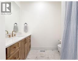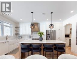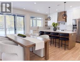 Exceptional craftsmanship meets contemporary luxury in this stunning Bowers Construction build, ideally located in the sought-after community of New Maryland. Thoughtfully designed and built to the highest standards, this 4 bed 3.5 bath home showcases the quality, precision, and attention to detail Bowers Construction is known for. Striking curb appeal is created through a sophisticated blend of stone and AL-13 metal façades, bold black windows, and 8 black exterior doors, while composite decking and sleek glass railings extend the modern aesthetic outdoors. 9 ceilings span all 3 finished levels, creating a bright and elevated atmosphere. The heart of the home features a custom kitchen by Kitchen Creations, including a walk-in pantry to balance style with everyday functionality. A modern electric fireplace with stone surround and custom shelving anchors the living space, while tile flooring in the foyer and all bathrooms adds a timeless, upscale finish. Spa-inspired bathrooms include wall-mounted toilets with concealed tanks (excluding the basement) and a statement custom ensuite shower. Comfort is ensured year-round with central heat and cooling. Located in one of Frederictons most desirable communities, enjoy top rated schools, scenic walking trails, and quick access to the city perfectly blending small town charm with convenience. A rare opportunity to own a meticulously built luxury home where modern design, superior workmanship, and location come together seamlessly. (id:31036)