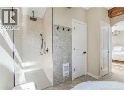 Modern luxury living with views of the beautiful Saint John River. Completed in 2023, this stunning executive bungalow sits on a beautifully fully landscaped 1 acre lot, with access to a nearby community boat launch; perfect for anyone who loves life near the water. This thoughtfully designed home offers 4 bedrooms and 2.5 bathrooms, soaring ceilings, oversized windows, and bright open living spaces. The show-stopping kitchen is the heart of the home, featuring stone countertops, gorgeous backsplash, a statement range, and an impressive 8 island, a walkthrough butlers kitchen into the additional walk-in pantry; a dream space for entertaining. Outside the dining area is a pergola-covered terrace, perfect for summer evenings, bbq's and backyard gatherings. The living room is warm & bright with large picture window with views of the water, featuring a cozy propane fireplace, built-ins & a dedicated workspace. Luxury primary suite at the back of the house with large picture windows and a show stopping spa-like ensuite featuring a custom walk-in tile shower, relaxing soaker tub, and walk-in closet. This sprawling bungalow still has 3 more bedrooms, a stunning main bathroom with tile shower, a 1/2 bathroom and beautiful + functional laundry/mudroom with access to the attached double car garage completes this stunning dream home! Meticulously maintained, showing serious pride of ownership, this is THE home you do not want to pass by. (id:31036)
