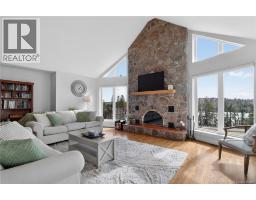 Stunning, fully updated executive home set on 28 acres with breathtaking waterfront. From the moment you step inside, youre greeted by a spacious foyer that opens into a spectacular main living area. The open-concept design is highlighted by vaulted ceilings and a floor-to-ceiling stone fireplace that anchors the living room. Large windows throughout flood the home with natural light. The main level is perfect for both everyday living and entertaining, featuring a large dining area and a show-stopping kitchen with quartz countertops and oversized island. The beautiful three season, heated sunroom has its own indoor bbq area and access to the heated in-ground pool. The primary bedroom offers a spa like bath, walk in closet and its own private deck. The second bedroom on this level is bright, spacious and has it's own mini-split (2025). The self contained lower level has a separate entrance, large windows overlooking the river, its own patio and garden. Living room, dining and kitchenette, wood stove, two large bedrooms and full bath. This area can be closed off from the main home for income potential or left open for single family use. Outside, the property continues to impress with an attached two-car garage, an oversized detached garage and paved RV parking. Nature lovers will appreciate the waterfront, haskap berry orchard and acreage, while the composite decks ensures low-maintenance outdoor living spaces. This exceptional property combines luxury, space, and opportunity. (id:31036)