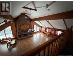 Welcome to the charming and historical Bathurst Golf Chalet! Set high atop the hill with spectacular views over the city and the Bathurst Basin this property is special and certainly one of a kind, sure to attract a lot of attention. The great room has a stunning stone fireplace ( not in use, condition unknown), roof shingles were replaced in recent years and the interior ceiling repainted, PVC windows, loft area provides a grand master bedroom overlooking this great room with French doors and a staircase. The main floor has an additional bedroom with 2pc powder room (ensuite) plus a large main bathroom with tub insert, laundry area, kitchen and large entry area with custom wood walls and ceramic flooring. Patios/decking were re done by this seller also. Basement is large and insulated with spray foam offering a heat pump also to keep it heated and dry.. an outside door also making it easily accessible for storage. Heat pump also in the kitchen upstairs. Other electric baseboard heaters also and a 200 amp electrical panel with breakers. Lots of opportunity here to continue renovating and do more with this place.. it would make an amazing airbnb project or a family home for someone. With a 1 acre lot it allows plenty of room to build a garage and garden and enjoy your outdoor space also. Golfing your thing? You are practically on the Squire Green golf course! Great location to enjoy skiing, golfing and the outdoors year round! Please note roof shingles (dark grey). (id:31036)