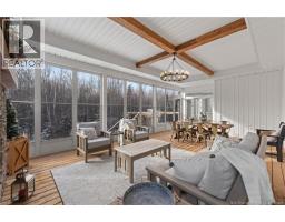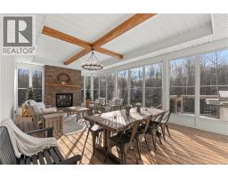LUXURY LIVING | 3.5 ACRES | 2,280 SQ FT ABOVE GROUND|This stunning east-facing bungalow offers the perfect blend of modern farmhouse design, space and luxury. With 6 generously sized bedrooms and 3.5 bathrooms, the home is ideal for families or those seeking room to grow. Inside, 9-FOOT CEILINGS and striking 10-FOOT TRAY CEILINGS create an airy, upscale feel, complemented by premium ceramic tile flooring throughout. The heart of the home is the chef-inspired kitchen, featuring QUARTZ COUNTERTOPS, a statement 10-FOOT ISLAND, upgraded KitchenAid appliances, coffee station, walk-in pantry and seamless flow into the bright living space highlighted by a propane fireplace - perfect for entertaining. Just off the main area, the EXPANSIVE 3-SEASON ROOM is bathed in natural light and offers serene views of the surrounding property while enjoying the built-in propane fireplace. A conveniently located laundry room, mudroom and powder room adds everyday functionality and ease. The master bedroom is a private retreat with an ensuite boasting a CUSTOM SHOWER, QUARTZ FINISHES, and HIS-AND-HERS WALK-IN closets. A WALK-OUT BASEMENT provides excellent flexibility for additional living, recreational, or guest space. Designed with efficiency, the home includes a GEOTHERMAL CENTRAL HEAT PUMP system, FULL-HOME WATER FILTRATION SYSTEM and whole home standby PROPANE GENERATOR. An exceptionally rare private lot in the city with wooded surroundings, offering a fully paved driveway and landscaped yard. (id:31036)