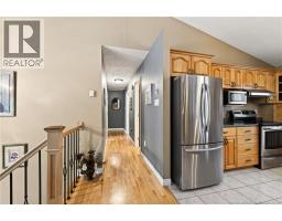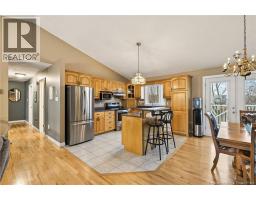 Welcome to this beautiful raised bungalow located on a corner lot in a quiet and family-friendly neighborhood in Dieppe, offering potential for an in-law suite. This well-maintained home offers comfort, functionality, and space for the whole family. The main floor features a bright open-concept layout with vaulted ceilings, a spacious living room, and a cozy propane fireplace creating a warm, inviting atmosphere. The kitchen offers ample cabinetry, stainless steel appliances, and a functional island, while the dining area provides patio doors leading to a large PVC back deck, perfect for relaxing or entertaining with no maintenance required. The main level features three bedrooms, including a spacious primary bedroom with Jack and Jill access to the main bathroom. Beautiful hardwood flooring flows throughout the main living areas. The fully finished lower level offers extra living space with a large family room currently used as a home cinema, a fourth bedroom, and a full bathroom with laundry. You will also find a den or family room with direct access to the outside, offering flexibility and potential for an in-law suite. The basement also provides direct access to the attached garage. Outside you will find a nicely landscaped lot with a paved driveway, storage shed, and interlocking stone walkways surrounding the home. Roof, gutters, vinyl siding, and PVC deck were updated in 2018. Located close to schools, parks, and amenities. Dont miss this great opportunity! (id:31036)
